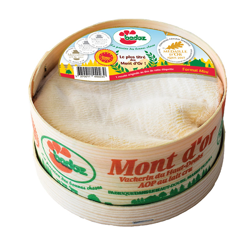 Il Mont d’Or è un formaggio a latte crudo di qualità. La crosta è dorata e tendente al rosso, con impronte del tessuto usato per la sgocciolatura.